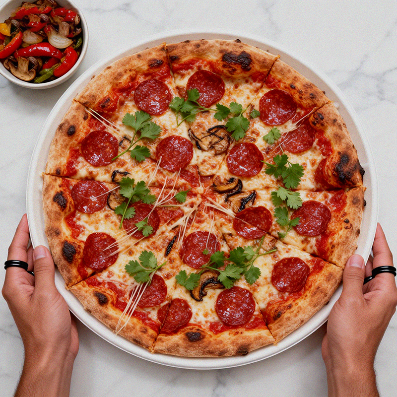 Icoloquei unha pizza fresca e caseira directamente no prato. E agardou. Para a miña sorpresa, non houbo afundimento, ningunha fuga, ningún drama. Aguantou perfectamente. Foi entón cando me decatei: aprato compostableprimeiro debe ser un bo prato. Ten que soportar a calor, a graxa e o peso: o mínimo indispensable para calquera prato desbotable para festas ou churrascadas.